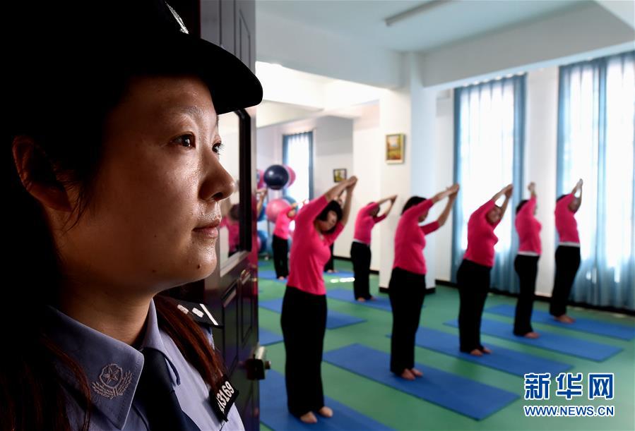 6月22日,河南省女子強(qiáng)制隔離戒毒所內(nèi)的戒毒人員在瑜伽室內(nèi)練習(xí)瑜伽。