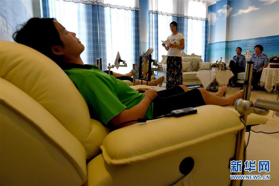 6月26日是國(guó)際禁毒日,今年的主題是“無(wú)毒青春健康生活”。在禁毒日前夕,記者走進(jìn)了河南省唯一的女子強(qiáng)制隔離戒毒所及唯一的未成年人強(qiáng)制隔離戒毒所。近年來(lái),戒毒所注重對(duì)戒毒人員的溫情關(guān)懷救助,搭建戒毒治療綜合性平臺(tái),努力為戒毒人員打造“溫馨之家”,設(shè)置了瑜伽室、健身室、心理咨詢室等場(chǎng)所,通過(guò)開(kāi)展各種體育鍛煉、心理咨詢、職業(yè)技能培訓(xùn)以及社會(huì)適應(yīng)性教育等活動(dòng),幫助戒毒人員強(qiáng)化體能、修復(fù)身心損害,使他們可以盡快走出困境,融入社會(huì)。新華社記者 李安 攝