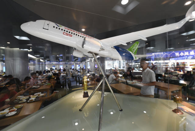 8月29日,在設(shè)計(jì)成“航空餐廳”的南航將軍路校區(qū)五食堂,一名用餐學(xué)生從航空航天模型展臺(tái)邊走過。