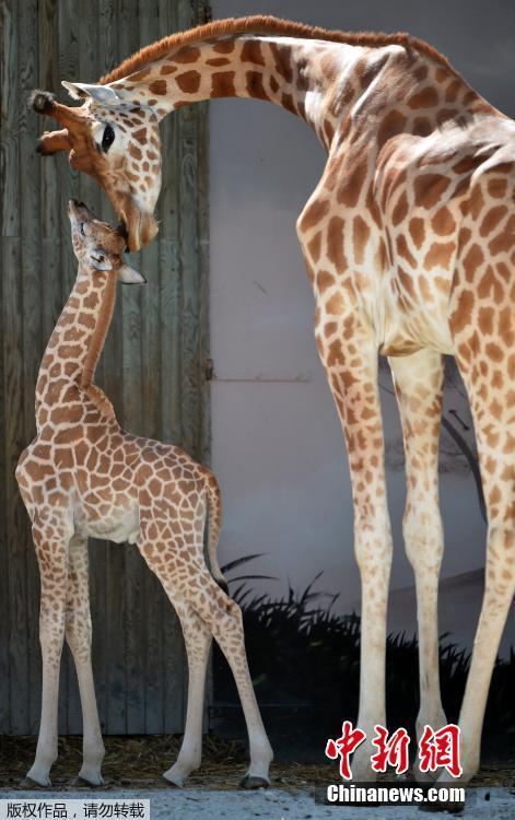 法12歲長(zhǎng)頸鹿誕下“寶寶” 垂眼吻子母愛(ài)濃