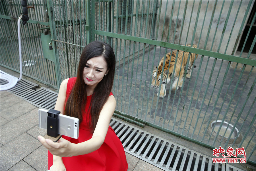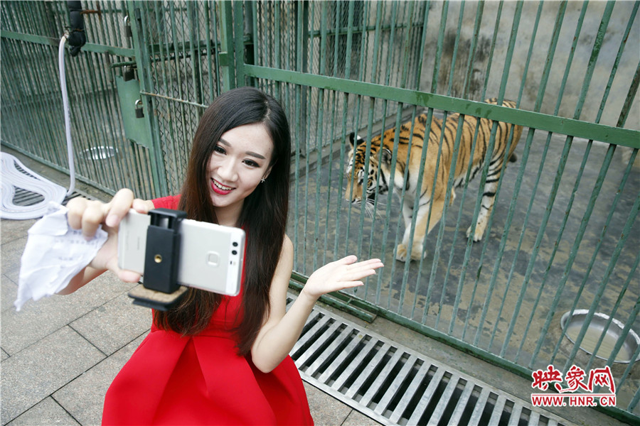 目前兩只華南虎都在圈養(yǎng)中,13日上午,為了一睹華南虎的芳容,映象網(wǎng)一點紅,開啟了動物園直播首秀,現(xiàn)場實時“采訪”了其中一只“國寶”虎妞,身處鐵柵欄籠舍的虎妞,看到很多“觀眾”拿著設備對著它拍攝,絲毫沒有害怕的樣子,甚至隔著鐵柵欄跟“觀眾”互動,彰顯其虎虎生威的霸氣。在美女主播Sasa清新、平易近人的直播中,短短數(shù)分鐘,實時關注量達到892人。動物園的負責人,對于首次的直播傳播方式,覺得很新穎、奇特。