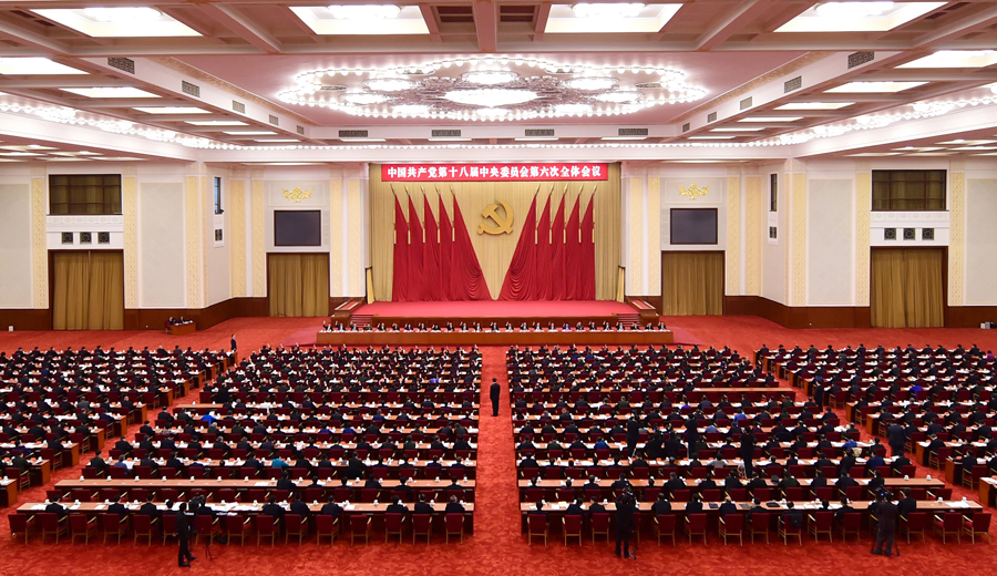 中國(guó)共產(chǎn)黨第十八屆中央委員會(huì)第六次全體會(huì)議,于2016年10月24日至27日在北京舉行。中央政治局主持會(huì)議。 新華社記者 張鐸 攝