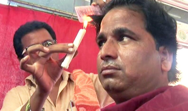 2016年11月1日?qǐng)?bào)道(具體拍攝時(shí)間不詳),印度卡納塔克邦古爾伯加,28歲的DasharathKumar展示自己的獨(dú)門絕技——用蠟燭理發(fā)。