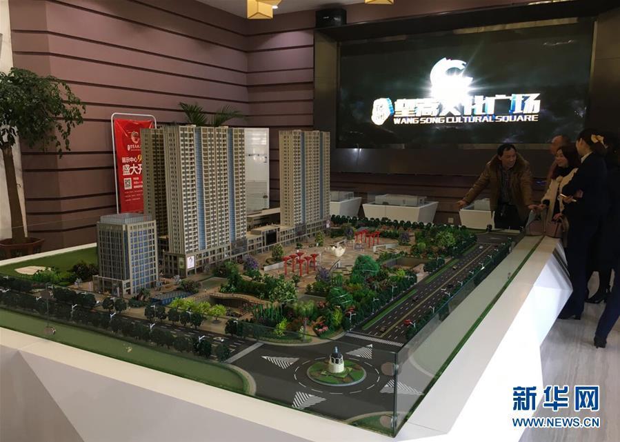 12月8日用手機拍攝的河南汝州望嵩文化廣場沙盤,沙盤左側是購物廣場和住宅樓,市民正在詢價。 新華社記者 馮大鵬 攝 圖片來源:新華網(wǎng)