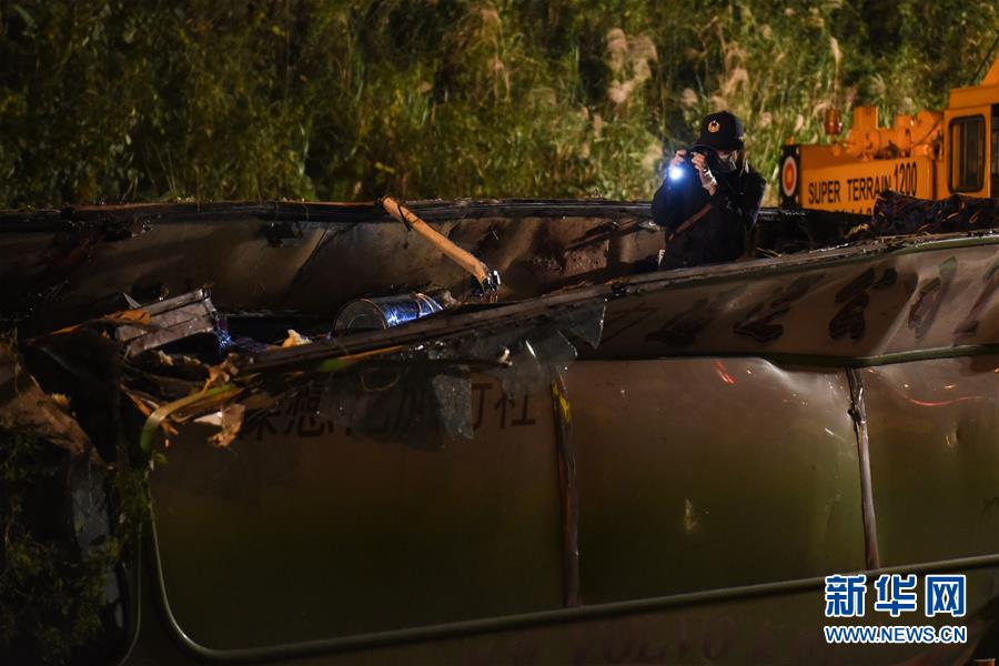 2月14日,工作人員在事故車(chē)輛內(nèi)取證。據(jù)臺(tái)灣消防部門(mén)2月14日零時(shí)許發(fā)布的消息,13日晚發(fā)生的翻車(chē)事故已造成32人死亡,受傷的12人已全數(shù)送醫(yī)。新華社記者從臺(tái)灣公路警察部門(mén)獲悉,游覽車(chē)上沒(méi)有大陸游客。臺(tái)北市消防局通報(bào),13日21時(shí)6分許,在臺(tái)灣公路主干道5號(hào)南港系統(tǒng)交流道接3號(hào)南下路段,臺(tái)北市蝶戀花公司一輛游覽車(chē)翻覆于引道邊坡,車(chē)內(nèi)共44人(游客42人,導(dǎo)游、司機(jī)各1人),其中死亡32人(30人未送醫(yī),2人送醫(yī)后不治),12人送醫(yī)持續(xù)治療中。新華社記者 歐東衢 攝