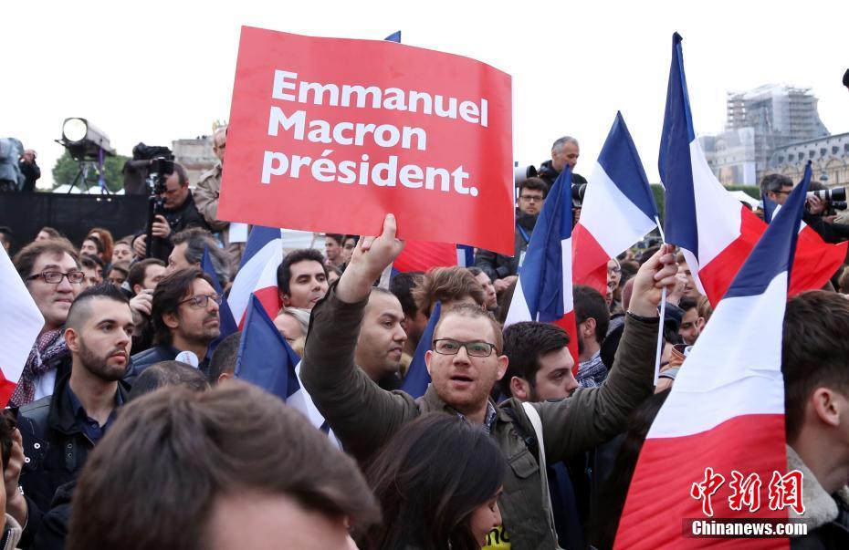 巴黎時間5月7日晚,法國總統(tǒng)選舉第二輪投票初步計票結(jié)果顯示,中間派獨立候選人、“前進”運動領(lǐng)導人埃馬紐埃爾·馬克龍以大幅優(yōu)勢擊敗極右翼政黨“國民陣線”候選人馬麗娜·勒龐。年僅39歲的馬克龍由此成為法國史上最年輕的總統(tǒng),也成為世界上最年輕的大國領(lǐng)導人。圖為馬克龍的支持者在得知馬克龍當選后歡呼。中新社記者 龍劍武 攝