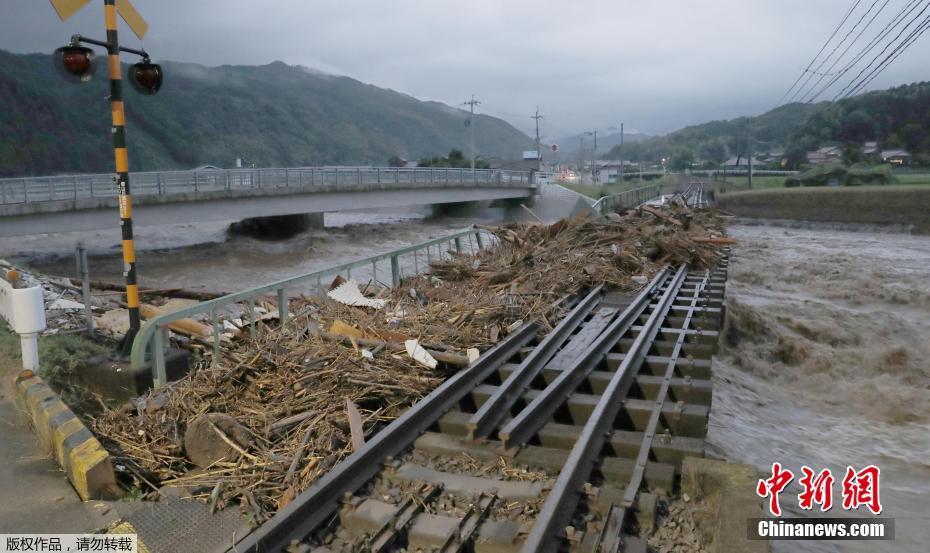 臺風(fēng)“南瑪都”4日吹襲日本,挾著時速144公里強風(fēng),在九州島東南部的長崎登陸,隨后九州島交通陷于癱瘓。圖為九州島福岡縣,洪水過后,鐵道上堆滿了木屑和垃圾。