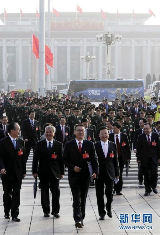 10月24日,中國(guó)共產(chǎn)黨第十九次全國(guó)代表大會(huì)在北京人民大會(huì)堂舉行閉幕會(huì)。這是代表走向人民大會(huì)堂。 新華社記者 申宏 攝 圖片來源:新華網(wǎng)