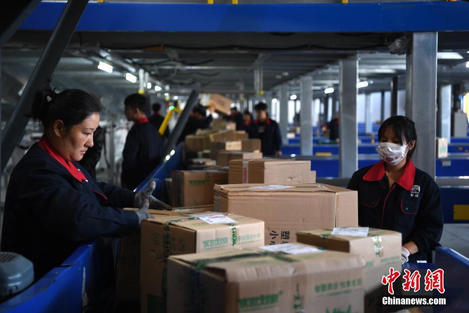 傳統(tǒng)分揀員正在分揀快遞包裹。文/韓蘇原 夏瑩 圖/韓蘇原