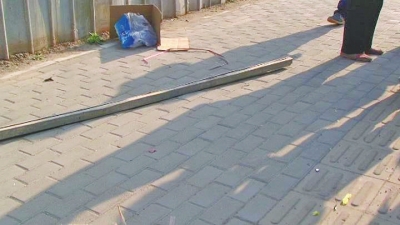 一位老大爺告訴記者:“第一次掉進院里的鋼管有兩米來長,被工地過來的人撿走了;第二次掉下的是工地腳手架上的長鋼管,有三四米長,把我家的防盜網(wǎng)砸穿,空調(diào)電線砸斷。這次我們報警后,不讓工地的人把長鋼管拿走。”