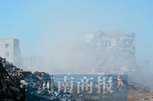 河南商報記者隨后趕到現(xiàn)場,站在建設(shè)路與西三環(huán)向南路口,離拆遷現(xiàn)場還有300多米,就已經(jīng)看到灰色揚塵升騰起數(shù)十米。