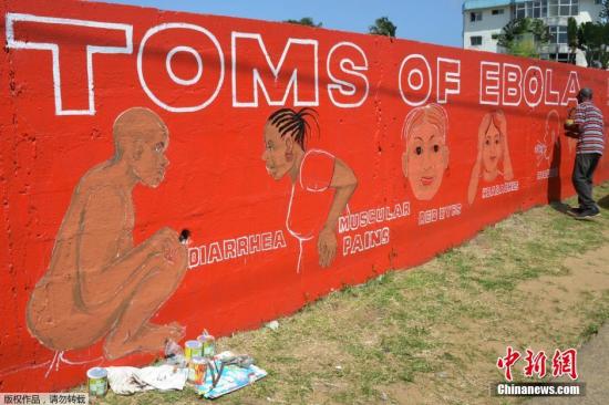 當地時間9月8日,在利比里亞,蒙羅維亞街頭,一名叫斯蒂芬·多伊的藝術家在墻上創(chuàng)作壁畫向人們介紹致命的埃博拉病毒病發(fā)癥狀。世界衛(wèi)生組織8日發(fā)出警告,利比里亞已經成為西非受埃博拉疫情肆虐最嚴重的國家,該國因疫情死亡的人數已經占整個西非發(fā)病死亡人數的一半以上。