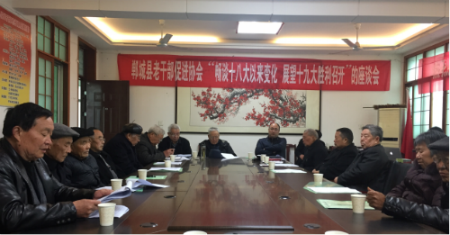 2017年3月24日,鄲城縣老干部促進協(xié)會“暢談十八大以來變化 展望十九大勝利召開”座談會在鄲城縣老干部活動中心成功召開。本次會議由鄲城縣老干部促進協(xié)會秘書長吳金德主持,鄲城縣委常委組織部長侯磊、老干部局長徐明堂等近50名老干部參與此次座談。會議一開始,老干部促進協(xié)會會長趙永祥宣布了領導班子的補充和聘請顧問的通知,副會長王新民宣讀周口市老干部5號文件,常務副會長崔允忠做了2016年工作回顧及2017年工作計劃。