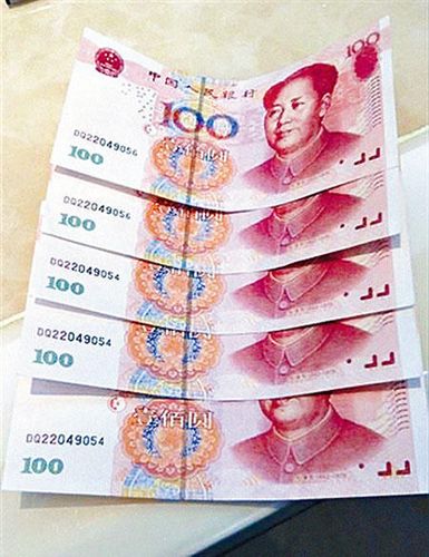 中新網(wǎng)6月19日電 據(jù)香港《星島日報》報道,一女子昨(18日)到聯(lián)合道樂富廣場一銀行存款,被揭發(fā)其中14張100元面額人民幣疑是偽鈔,驚動警方將其拘捕,連同懷疑“假人仔”帶署調(diào)查,據(jù)悉內(nèi)地近日發(fā)現(xiàn)新一批仿真度極高、鈔票編號相同假人民幣,香港警方正追查是否有新的“假人仔”流入香港。
