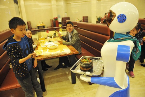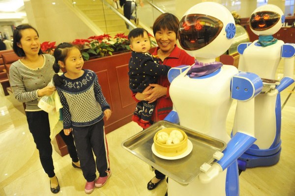 11月24日,浙江寧波聯(lián)盛廣場的一家港式餐廳推出了機(jī)器人送餐服務(wù),"她們"端著顧客點(diǎn)的食物,在餐廳里滑行前進(jìn),到點(diǎn)餐的餐桌,會自動停下來,用普通話向顧客播報“您點(diǎn)的餐,請慢用”。新奇的創(chuàng)意吸引了許多市民前來體驗(yàn)。郭小鎧/CFP