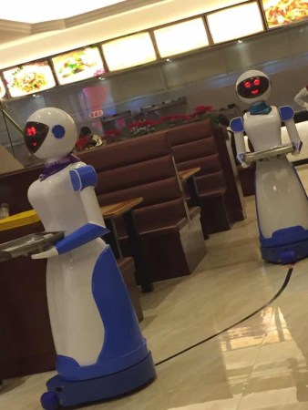 為什么會想到開一家機(jī)器人餐廳?盧迪鈳說,他原先是做電子商務(wù)的,因?yàn)樽龅貌缓?,他一直想轉(zhuǎn)行。一次上網(wǎng)時,他看到昆山開了一家機(jī)器人餐廳,反響非常好。于是他去昆山進(jìn)行了考察。這次考察讓他下了決心,在家人的支持下,他開了這家機(jī)器人餐廳。盧迪鈳告訴記者,他們餐廳里的機(jī)器人會說40句基本用語,如“你的菜到了,請慢用”等。他想下次編程的時候加入寧波話,讓機(jī)器人更親切。