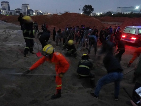 12月27日傍晚5點20分左右,悲劇發(fā)生在翔安馬巷鎮(zhèn)亭洋村亭洋公寓后面工地。圖為消防官兵和附近居民幫忙挖沙救人。