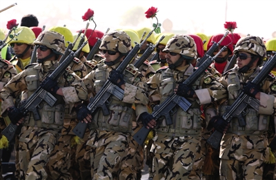 4月17日,德黑蘭,伊朗士兵參加閱兵儀式。當日,伊朗多個城市舉行盛大閱兵。