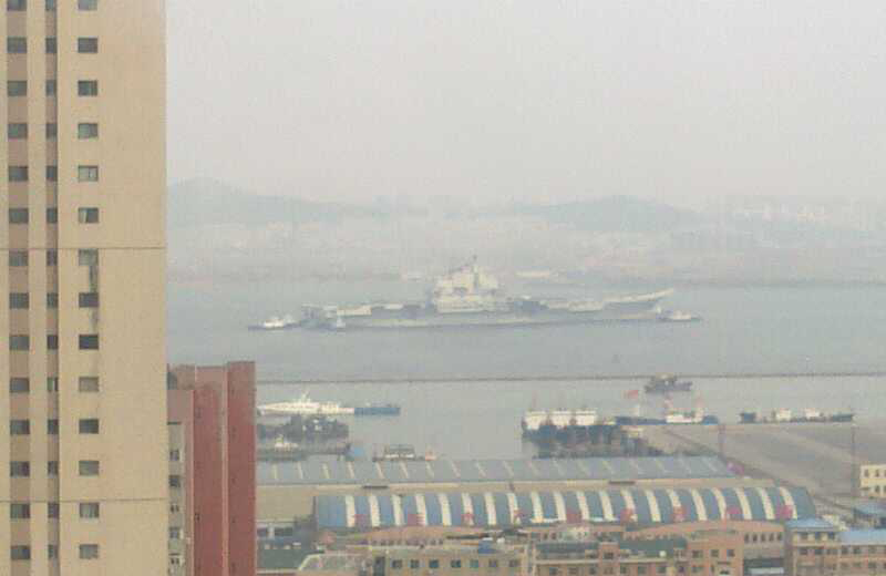 中國航母瓦良格號(hào)目前正在大連準(zhǔn)備第5次和第6次試航,圖為試航回航時(shí)的現(xiàn)場(chǎng)。