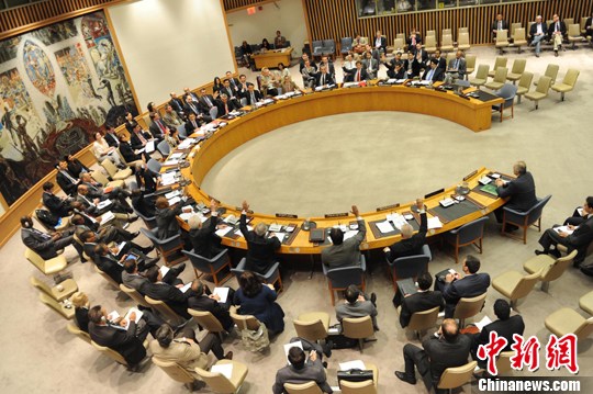 聯(lián)合國(guó)安理會(huì)21日一致通過(guò)決議,決定設(shè)立聯(lián)合國(guó)敘利亞監(jiān)督團(tuán)(聯(lián)敘監(jiān)督團(tuán)),初期部署300名非武裝軍事觀察員,最初任期為90天。中新社發(fā) 孫宇挺 攝