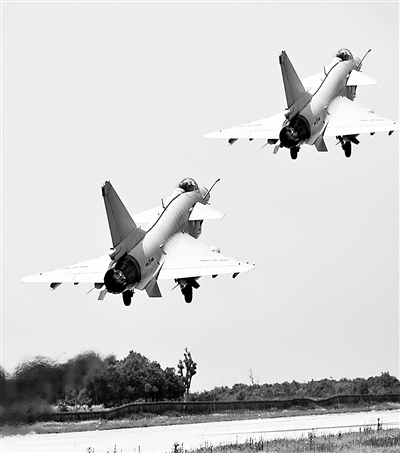 南空航空兵某師注重培養(yǎng)指揮員組織協(xié)調(diào)能力和飛行員自主發(fā)現(xiàn)、攻擊目標(biāo)以及靈活處置各種空情的能力,提高部隊(duì)整體戰(zhàn)斗力。圖為4月下旬,戰(zhàn)鷹升空訓(xùn)練。 本報(bào)特約記者 賁道春攝