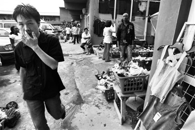 2002年,一名中國(guó)男子從尼日利亞拉各斯中國(guó)城的布店走出來(lái)。
