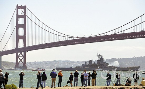 26日,“艾奧瓦”號(hào)通過金門大橋。