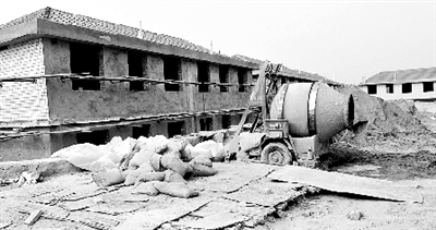 在泰山村村西邊看到大面積在建別墅已經(jīng)停工,一個農(nóng)民工說,這兒是“龍騰盛世”四期。關于停工,該農(nóng)民工說:“停幾天還會再開工的,村支書能量大著呢?!?/p>