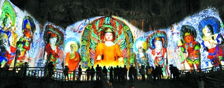 龍門石窟最大的像龕——奉先寺,眾佛陀“盛妝”迎賓。