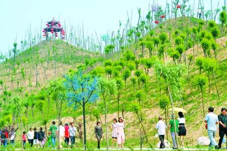 當(dāng)日上午,省市有關(guān)領(lǐng)導(dǎo)共同為沈丘“中華槐園”舉行隆重的揭牌、開園儀式,標(biāo)志著中華槐園正式對外開放。隨后,游客們在“槐園”中參觀、賞樹(如圖),看著滿眼的紅花槐、白花槐、紫花槐,還有黃金槐、龍爪槐、五葉槐等,紛紛拿起相機(jī),將這滿園美景盡收其中。