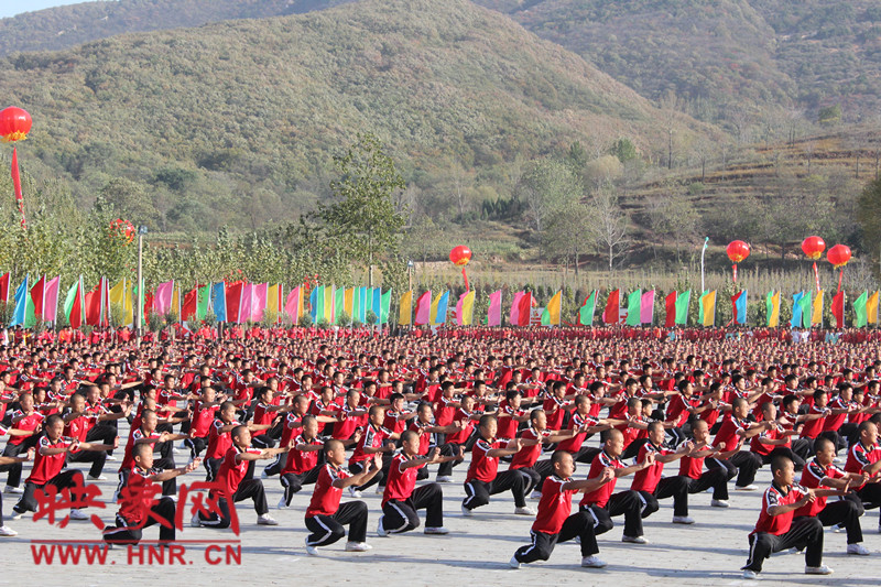 10月22日,少林寺塔溝武術(shù)學(xué)校的學(xué)員在第九屆中國(guó)鄭州國(guó)際武術(shù)節(jié)迎賓式上表演萬(wàn)人團(tuán)體武術(shù)。