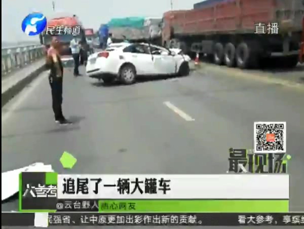 小轎車黃河大橋迎面撞貨車 兩死一傷