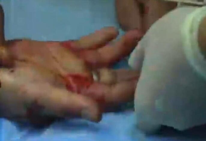 男子一個不小心 手卡收割機