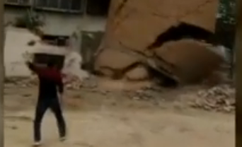 現(xiàn)場(chǎng):煙囪倒塌 人被砸中