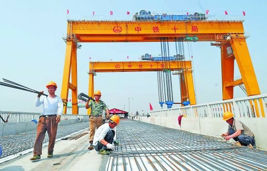 鄭濟(jì)高鐵在建 橋墩穿上藍(lán)“雨衣”