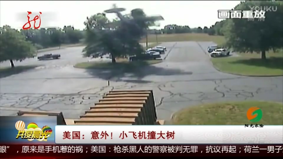 驚險(xiǎn)!小飛機(jī)降落撞大樹(shù)