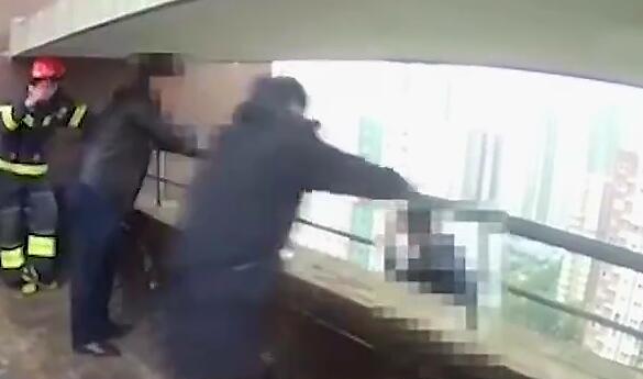 實(shí)拍民警高樓一跳 救下輕生者