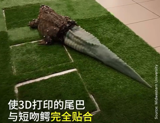 這條失去尾巴的短吻鱷裝上3D打印的尾巴 重獲新生