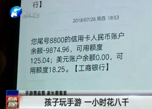 孩子玩手游 一小時(shí)花八千
