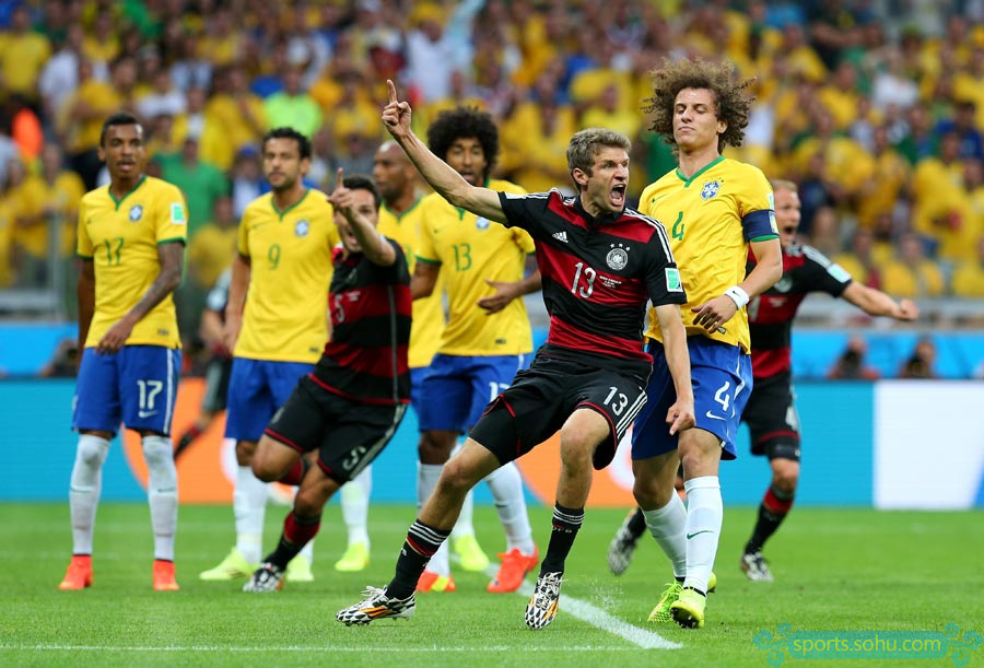 北京時(shí)間7月9日凌晨4時(shí),2014年巴西世界杯首場半決賽在貝洛奧里藏特的米內(nèi)郎體育場進(jìn)行,東道主巴西迎戰(zhàn)上屆季軍德國。最終,德國隊(duì)?wèi){借在18分鐘內(nèi)連入5球的攻擊狂潮以及下半場許爾勒替補(bǔ)登場后的梅開二度,7-1超大比分淘汰巴西,昂首晉級決賽。第10分鐘,穆勒利用角球機(jī)會首開紀(jì)錄。第22分鐘,克洛澤門前兩連擊攻入世界杯第16球,超越羅納爾多,成為世界杯進(jìn)球第一人。第24分鐘和第25分鐘,克羅斯1分鐘內(nèi)連入2球。第28分鐘,赫迪拉又接厄齊爾傳球打進(jìn)一球。第68分鐘,許爾勒又接拉姆助攻,門前包抄打門得手。第79分鐘,許爾勒禁區(qū)左側(cè)小角度攻入世界波。第90分鐘,奧斯卡才攻入挽回顏面的一球。