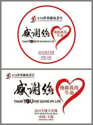 2015年6月14日是第十二個世界獻血者日(WBDD, World Blood Donor Day)。世界衛(wèi)生組織將今年世界獻血者日的主題確定為“感謝您挽救我的生命”,今年的宣傳口號是“無償獻血,定期獻血。獻血事關緊要?!笔澜缧l(wèi)生組織希望各國和地區(qū)向以獻血拯救了無數生命的獻血者表達衷心的感謝,并鼓勵全球有更多的人自愿、定期獻血。每年世界衛(wèi)生組織都要為全球的慶祝活動指定一個主辦國,今年的主辦國為中國,主會場活動在上海,由上海市血液中心(世界衛(wèi)生組織輸血合作中心)組織。