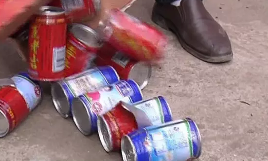揭開所有罐體上面的塑料層,這下徹底開了眼界,這里面還有杏仁露、核桃露,而且有的還是啤酒罐,罐體可以說是五花八門,這下大伙才明白過來,買到假貨了。無獨(dú)有偶,駐馬店確山縣的李大哥也收到了假冒的王老吉。