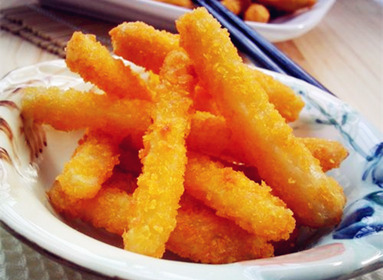 地瓜3個(gè)、面粉、面包糠適量、雞蛋適量