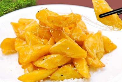 2.鍋內(nèi)放入油(略多些),倒入紅薯。