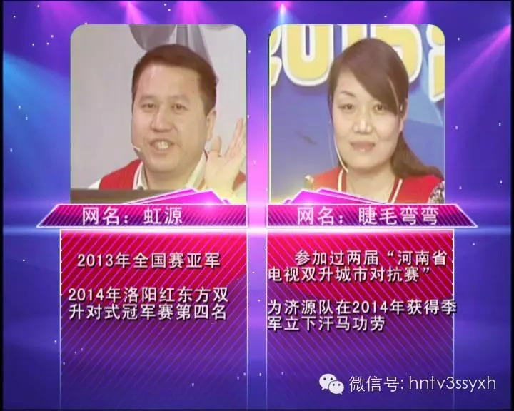 “樂在雙升”和“閑情逸趣”是一對(duì)老搭檔,城市對(duì)抗賽冠軍開封隊(duì)主力隊(duì)員,兩人搭檔曾獲得2015年天河灣精英賽冠軍?!伴e情逸趣”曾獲得2012年?yáng)|方金典杯冠軍,“樂在雙升”曾獲得2010年電視雙升擂臺(tái)賽冠軍。