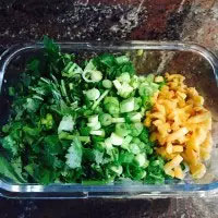 3. 準(zhǔn)備好香菜、蔥、榨菜備用。