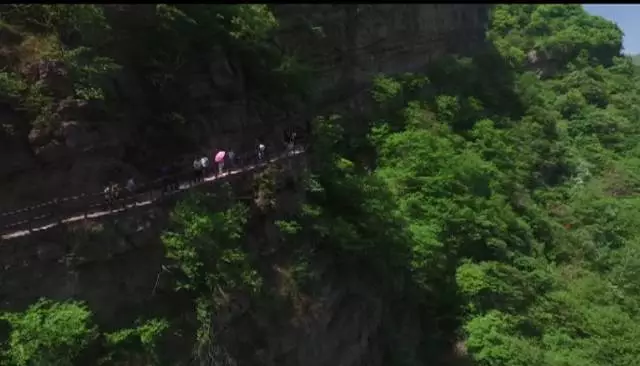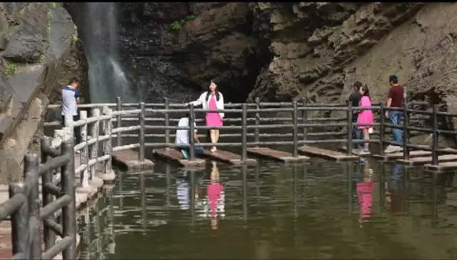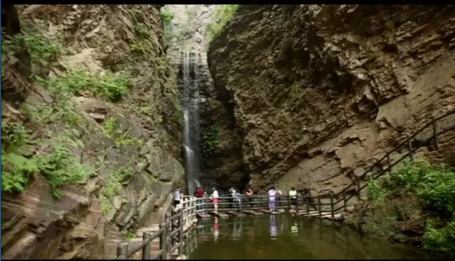 瀑布高達(dá)100余米,從井口水簾洞落下,形成了自然奇觀,漫步在棧道之上,便有穿云破霧之感。在這里,遠(yuǎn)望可領(lǐng)略高山整體氣勢之壯美,近觀可品察,山石樹木形色質(zhì)紋之奇秀。
