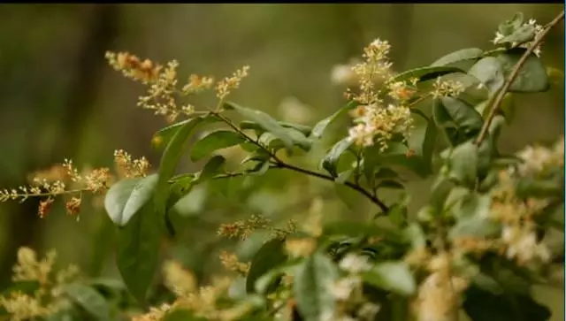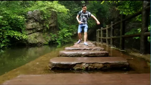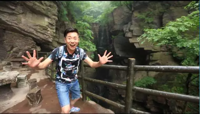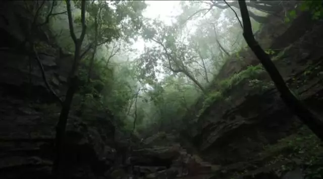 看到這棵樹了沒有,據(jù)說這個(gè)葉子有個(gè)奇特的味道,是一股橘子味,在這山上還有很多珍貴野生的樹種,漫山遍野一股清香襲來,再往前走就可以看到天井了,天井四面峭壁,犬牙交錯(cuò)高深莫測。