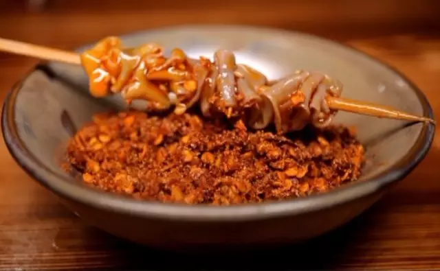不可錯(cuò)過(guò)的還有自制蝦滑,彈彈的蝦滑在蒜蓉辣醬中一蘸,入口就是獨(dú)有的甜辣味兒,還能吃到小顆粒的泡椒呢,有些吃貨不太喜歡甜口的,那就不妨來(lái)試試椒鹽干碟,串串在干碟里轉(zhuǎn)上一圈兒,分分鐘就征服挑剔的嘴巴。