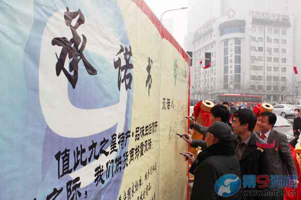 上午,以河南豐富的農(nóng)業(yè)特產(chǎn)濟(jì)源為優(yōu)勢,匯集中原名優(yōu)特產(chǎn)的“河南九之星特產(chǎn) 品味生活館”在鄭州市黃河路與經(jīng)三路口正式開門營業(yè)。河南影視集團(tuán)董事長宗樹潔、省農(nóng)業(yè)廳副巡視員魏仲生、河南電視臺(tái)新農(nóng)村頻道總監(jiān)張克宣出席并為為開業(yè)儀式剪彩,九之星總經(jīng)理肖俊德和公司員工并在商品質(zhì)量承諾保證書上鄭重簽字。